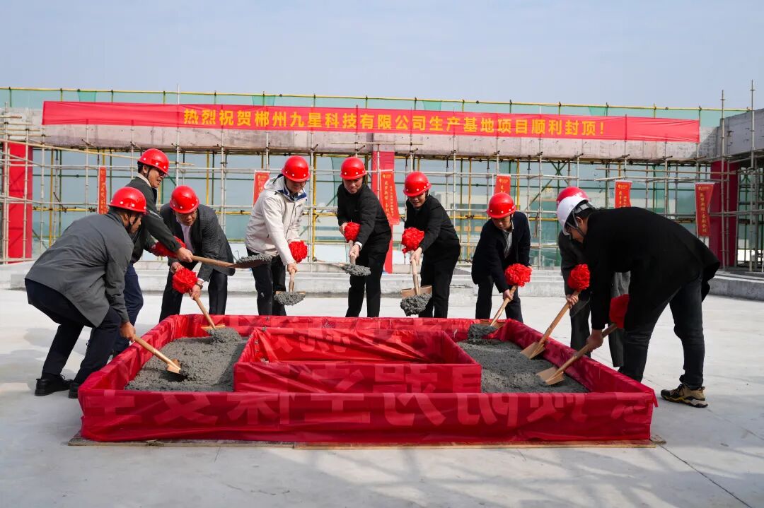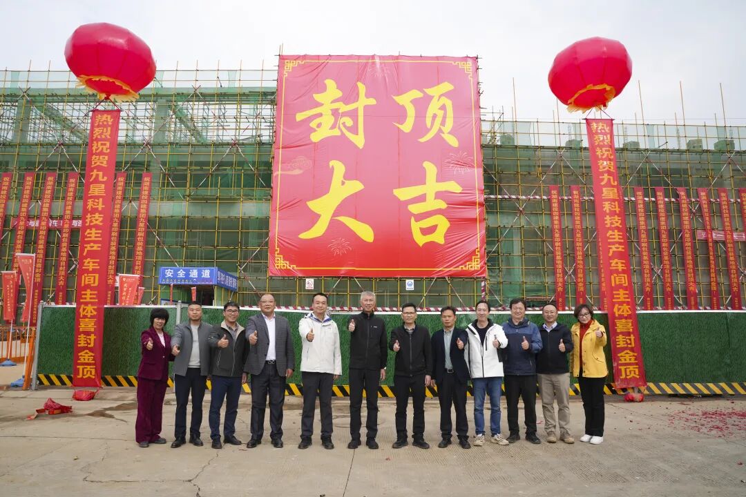 主体封顶是项目建设的重要里程碑,更是新奋斗的起点。未来,九星印刷将以郴州基地建设为契机,持续深化人机一体化智能系统与绿色发展理念,充分的发挥产业协同优势,助力区域产业升级,为推动中部地区印刷包装产业高水平发展书写崭新篇章!